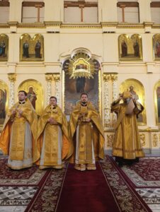 Ему сослужили благочинный собора иерей Роман Поршнёв, иерей Сергий Нурматов и диакон Иоанн Горбач.