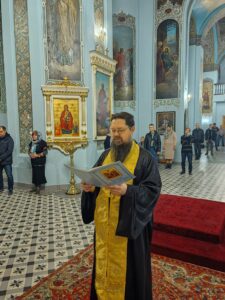 Ему сослужили ключарь собора протоиерей Димитрий Усольцев, благочинный собора иерей Роман Поршнёв, иерей Сергий Нурматов и диакон Иоанн Горбач.