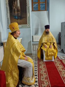 Божественную литургию совершил почетный настоятель собора протоиерей Сергий Догадин. Ему сослужили ключарь собора протоиерей Димитрий Усольцев, благочинный собора иерей Роман Поршнев, клирик собора иерей Сергий Нурматов и диакон Иоанн Горбач.