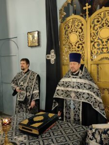Богослужение совершил настоятель собора иерей Александр Чеботарев. Ему сослужили почетный настоятель собора протоиерей Сергий Догадин, ключарь собора протоиерей Димитрий Усольцев, благочинный собора иерей Роман Поршнев, иерей Сергий Нурматов и диакон Иоанн Горбач.